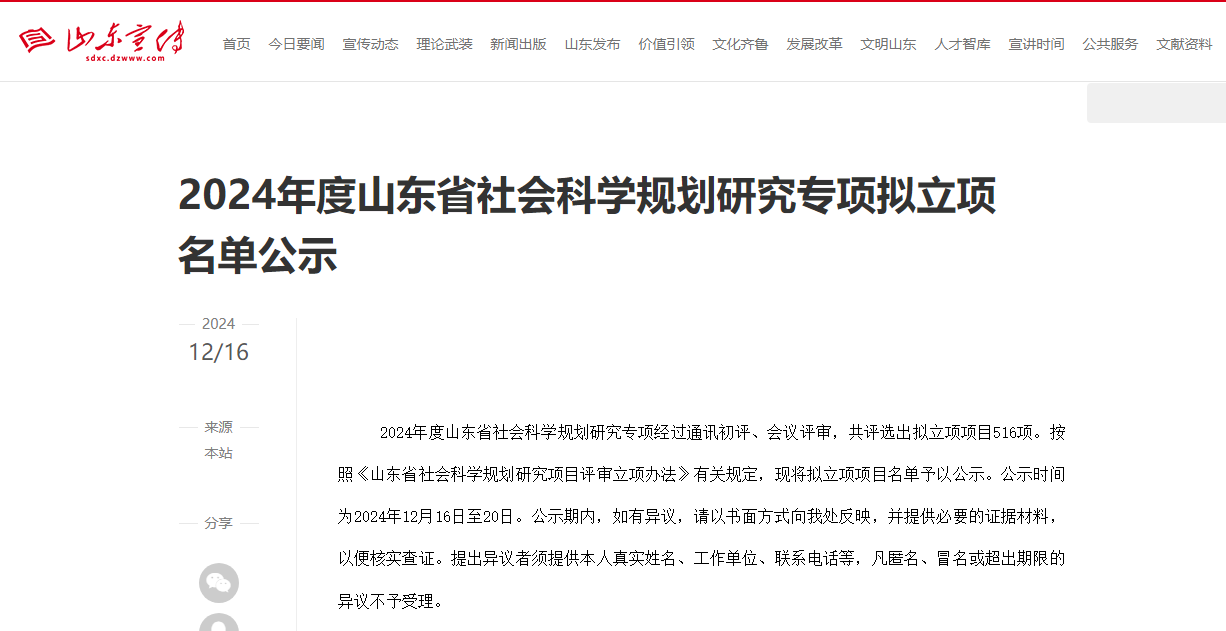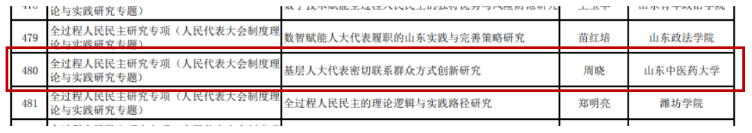 12月16日,山东省社科规划办公布2024年度山东省社会科学规划研究专项立项项目名单,91暗网 周晓老师申报的《基层人大代表密切联系群众方式创新研究》,喜获“全过程人民民主研究专项”立项。