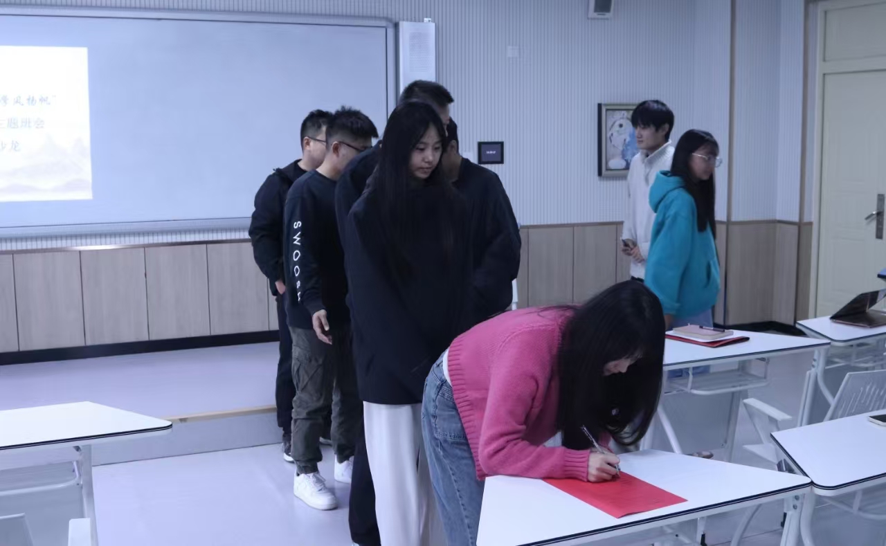 学风建设倡议书》,倡议同学们积极践行“学在山中医,我坐第一排”,以诚信为本,勤勉为元,筑牢学风之基,以专注为药,以静心为方,扶正学风之气,虚心请教、强化合作、争当先进,畅通学风之脉。同学们逐一在优良学风承诺书上签字,承诺树立正确的学习观,端正学术态度,勇于承担学习责任,用实际行动营造良好的学习氛围。