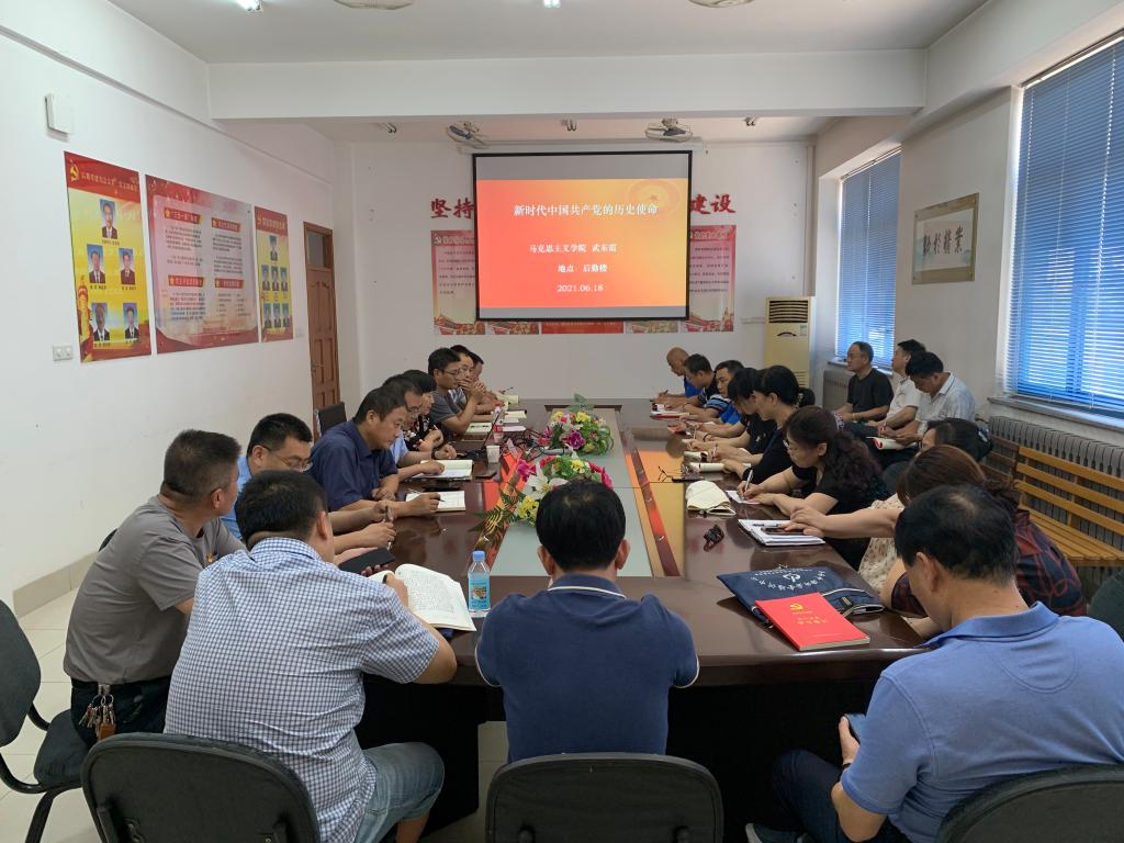武东霞教授为后勤基建党总支全体党员和科级以上干部作党史学习教育宣讲“新时代中国共产党的历史使命”。