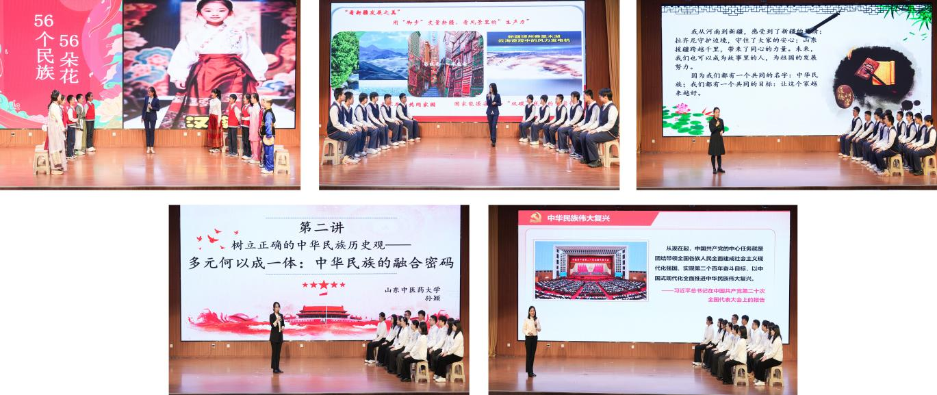 教师孙会五位教师分别以“中华民族大家庭”“民族团结筑梦圆”“中华民族一家亲”“中华民族大融合”“凝聚民族心 共筑复兴梦”为主题进行现场教学展示。小学阶段侧重以民族故事、传统游戏来播撒民族团结种子,中学阶段侧重结合历史脉络、现实案例深化认知认同,大学阶段则侧重依托理论阐释筑牢思想根基,充分呈现了不同学段思政课一体化建设整体推进、有序衔接、螺旋上升的特点,有效推动中华民族共同体意识在循序渐进中浸润青年学生心灵,切实增强大中小学思政课铸魂育人的协同性、针对性、有效性。